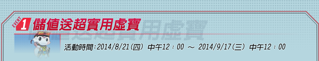 《領獎期限》:請於活動期間內儲值、領取完畢。 |