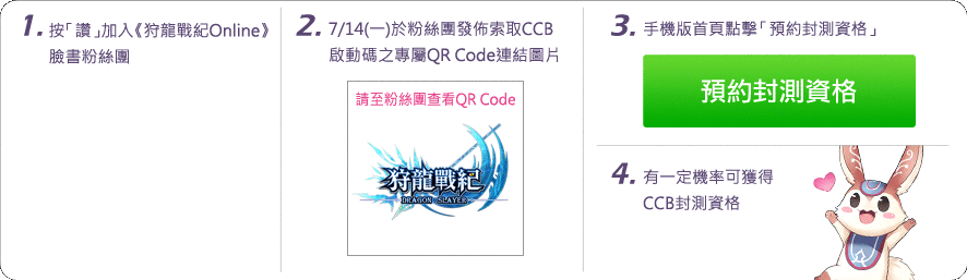 或者也可請幸運得獎者前往 資格查詢 確認是否已開通CCB封測資格! - 若尚未申請「狩龍戰紀Online」遊戲帳號,將無法順利參與活動並開通封測資格!